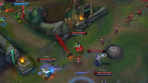 团队优势局面下进攻下路二塔位置,被BFX开团后Keria放出关键大招保全团队,多次立下大功帮助队伍赢下比赛。