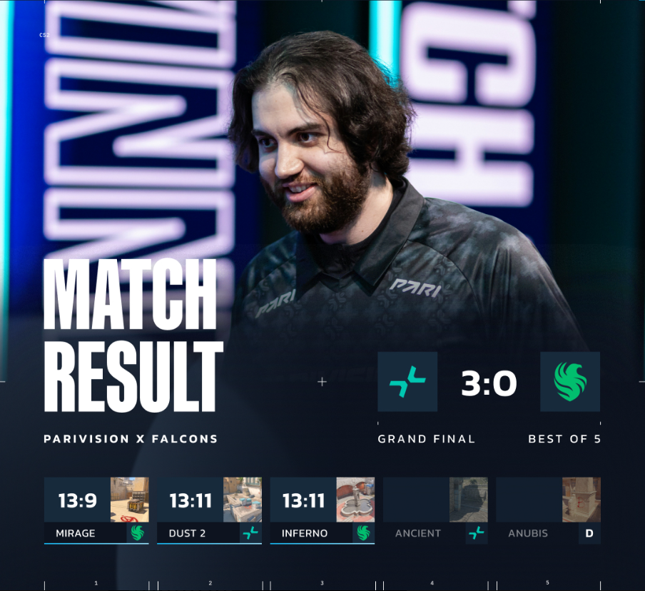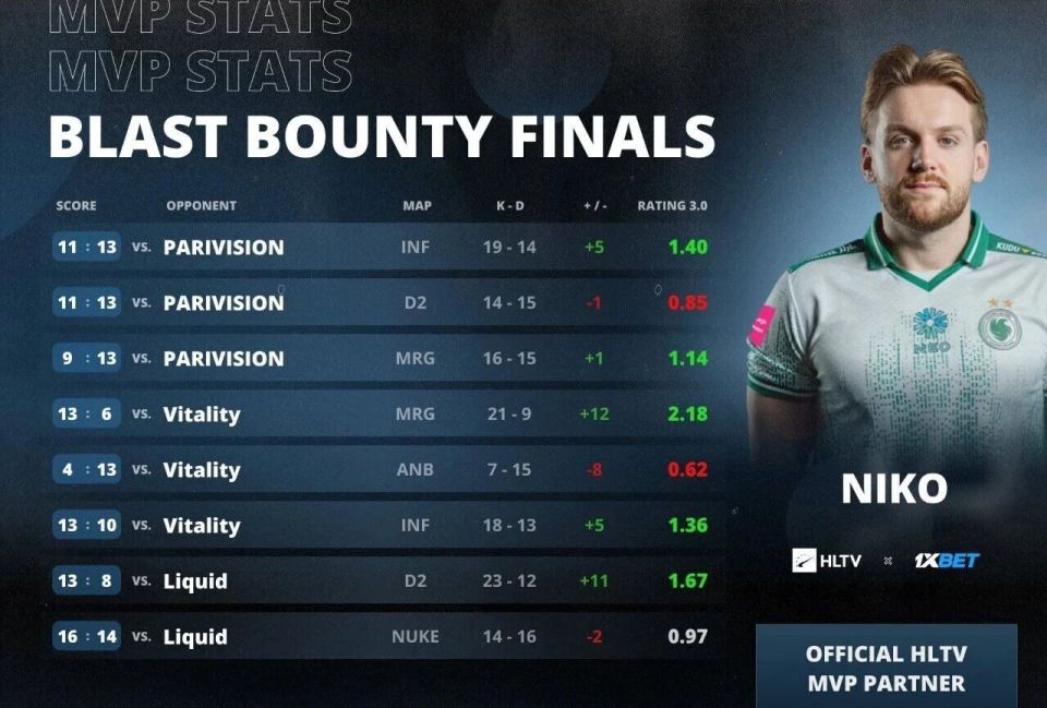 决赛后,NiKo以亚军身份夺得了MVP荣誉。这使得NiKo和m0NESY在加入猎鹰后,他们俩获得的赛事MVP均为亚军MVP。