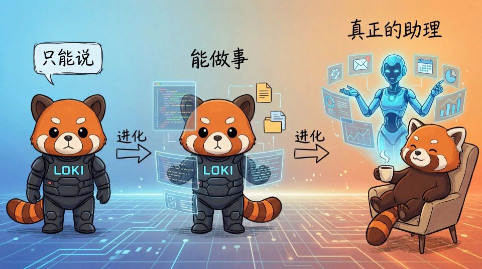 有了Skill或者说 Agent,AI 可以动手干活了:读文件、写代码、调 API、生成图片、更新文档……