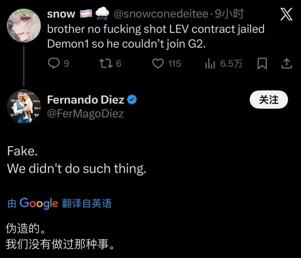 魔哥表示自己没去G2是和LEV合同问题,随后LEV老板发文否认