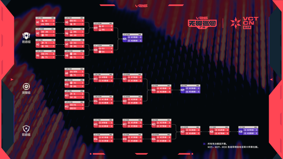 第二周赛事将从1月28日持续至2月1日,五天的赛程中将进行10场比赛交手,各队伍将在胜者组、突围组与败者组展开多轮较量,直至2月7日-9日的总决赛,届时三场BO5巅峰对决将依次上演,胜出队伍将以CN赛区1-3号种子身份晋级 2026 圣地亚哥大师赛,与全球顶尖战队争夺冠军赛积分。