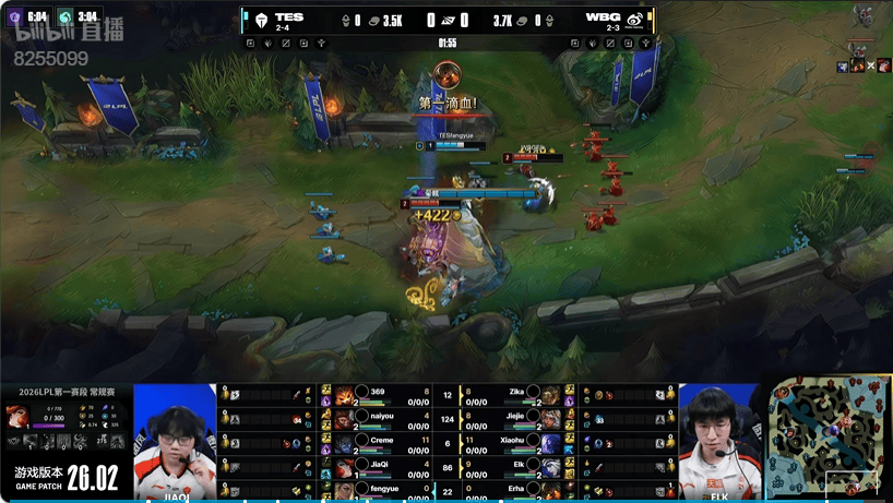 1分钟:WBG双人种越塔强杀JiaQi拿到一血
