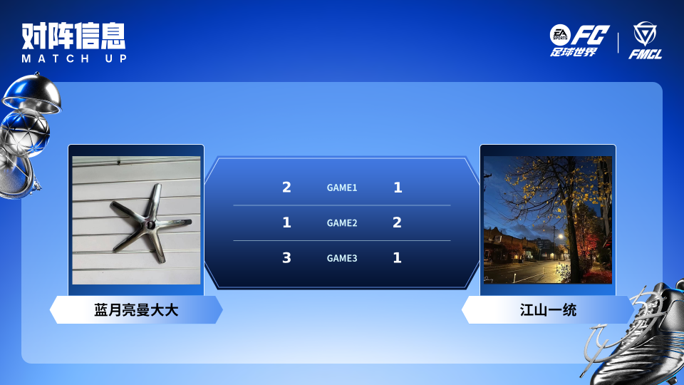 第三局中,双方展开防守大战,双方90分钟战至1-1平,加时赛中,【蓝月亮曼大大】连入两球,以3-1的比分取胜,最终【蓝月亮曼大大】以大比分2-1战胜【江山一统】,成功闯入下一轮。