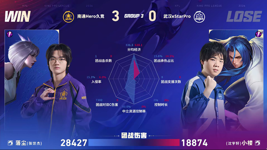 Hero/ES第三局数据图:坦然团战承伤伤害拉满