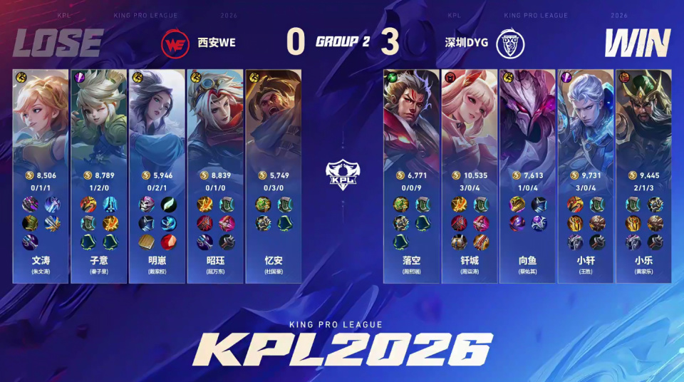 DYG和WE,过去的几年这两支战队都是B组沉沦,如今竟然是在竞争S组的比赛中交手,今年春季赛的变化还是太大了。长相酷似柯洁的辅助落空打得很出色,向鱼也证明了自己还有油。小乐应该是退役选手复出之后效果最好的,小轩这个赛季的表现也有明显进步,钎城的坚守终于有了结果。