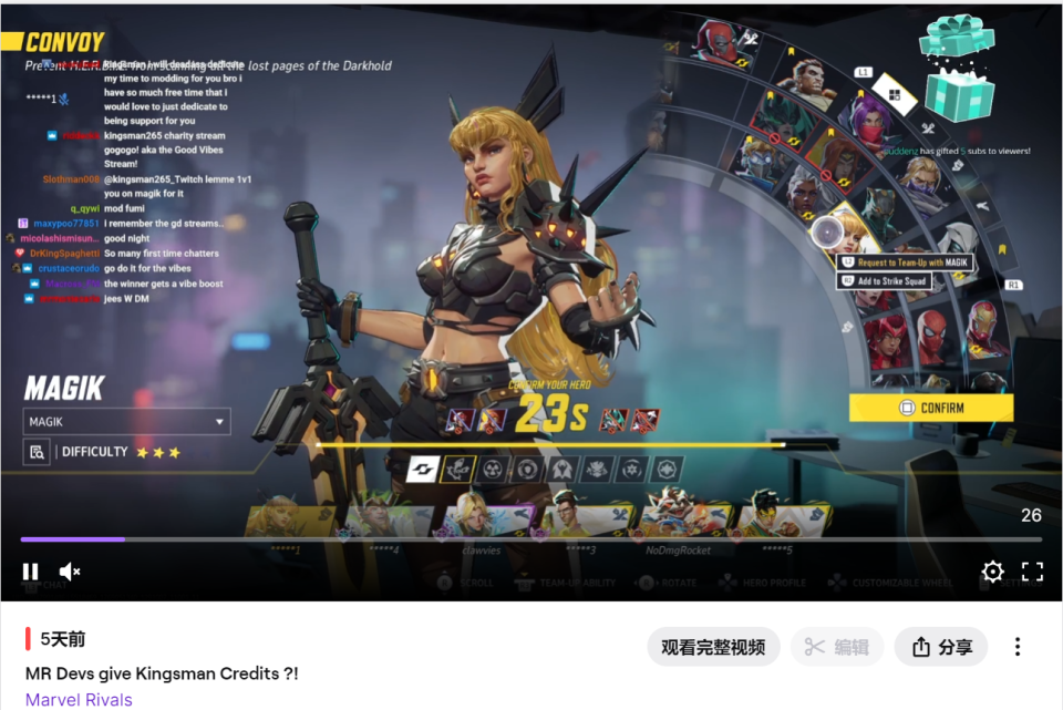 而在最后,网易官方甚至也给Kingsman赠送了《漫威争锋》的游戏代币,让他去购买游戏中的魔剑客皮肤。