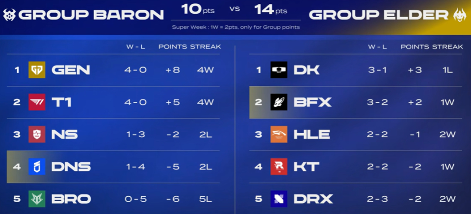 当然,BFX开心的同时,大龙组的T1就真的太难过了,BRO和DNS两兄弟相继战败,按照规则,要是接下来NS再输的话,大龙组积分上就比不过了,作为败者,只有一个能直接晋级,但是GEN的小分优势又比T1厉害,也就是说,T1即使全胜,也是要去打入围赛的,难怪Faker都要吐槽了,这换谁,估计都不能接受吧。