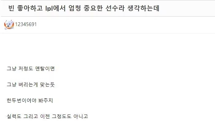 甚至LCK赛区的观众,都在论坛里为BLG打抱不平:虽然我也喜欢Bin,也觉得他是LPL非常重要的选手,但如果他心态就这水平的话,一次两次还能包容一下,连续犯应该直接放弃掉才对,而且Bin现在的实力,也非当年那般了,连国外观众都看不下去,可见Bin的嚣张,是众所周知的。