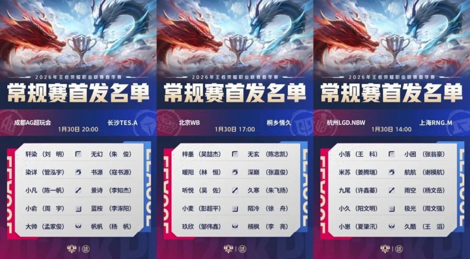 一月三十日的春季赛由LGD和RNG、微博和情久、AG和滔搏带来,可能很多人觉得LGD锁定B组后收官战就可以摆烂了,其实不然,这场比赛对他们也很重要,LGD赢下RNG可以让自己更有信心从B组打出来,他们这样做就必须当水鬼拉RNG一起去B组遨游。曾几何时AG落到了这番田地,1-2战绩的AG今天要是输给滔搏就可以俯冲B组,这对AG粉丝来说很难接受。微博和情久都是一组还未输过的战队,这场比赛微博打赢情久可以锁定S组,打不赢也不慌还有机会。PS:LGD战绩0-4,RNG战绩1-3,RNG输了必定去B组,赢了还有机会保留A组。