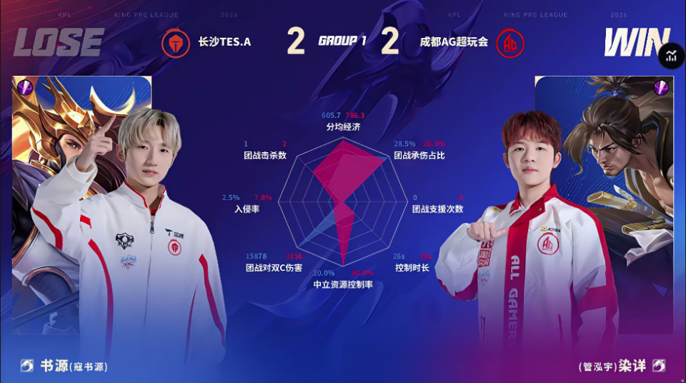 AG/TES第四局数据对比:轩染马超伤害占比高达百分之三十五