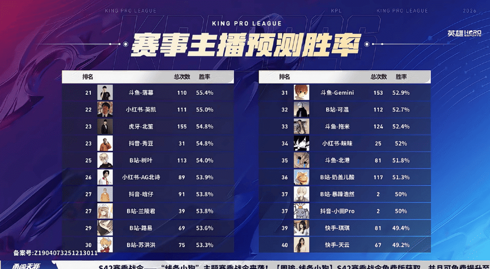 抖音-皓楠胜率76.9%,位于排行榜第一。