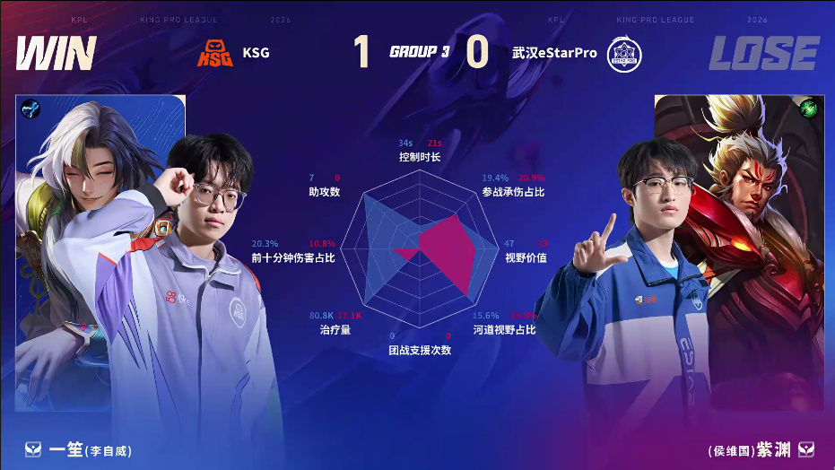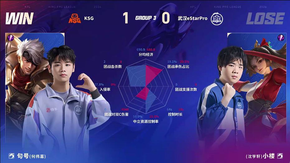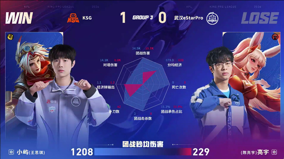 KSG/ES第一局数据图:小屿戈娅全包围亮宇公孙离