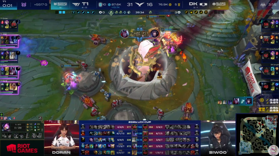 本周末LCK第一赛段的第一阶段迎来收官战,2场巅峰对决,T1对战DK,以及GenG对战HLE。不过很可惜,原本以为今年换了新双人组的DK可以有不一样的表现,结果还是被T1零封了。或许是T1在转会期的换人同样太出色了吧!不过这也是让LCK的远古龙和大龙组同样都是变成了14分,悬念留到了最后一天,GenG对战HLE将直接决定很多事情。