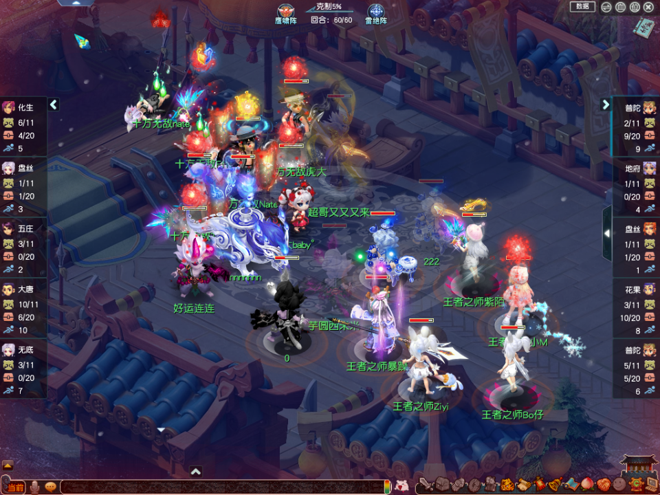 【十方无敌】(对战方)阵容为:化生、盘丝、五庄、三扫大唐、无底洞;