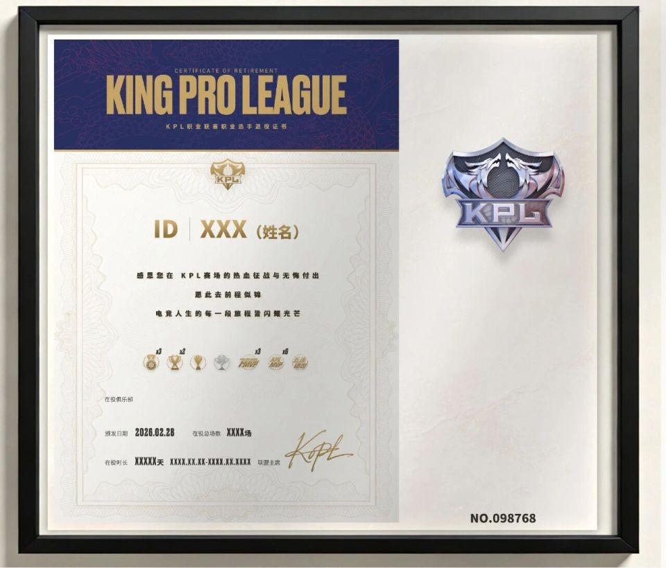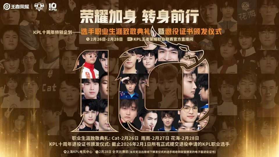 在KPL十周年到来之际,为表达对选手多年付出的感谢,KPL官方将推出十周年选手致敬典礼;同时,为所有正式提交退役申请的KPL职业选手颁发退役证书(包括已提交申请者和未来提交申请者)