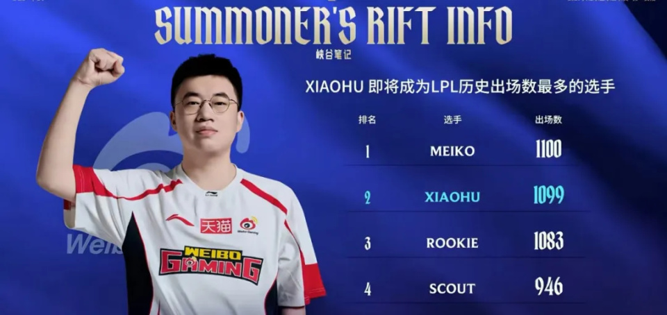 LPL精彩继续,对于小虎来说,这场和BLG的比赛还是很有纪念价值的,毕竟这场之后,小虎就会达成一个了不起的成就,那就是LPL出场数第一的成就,1101场出场数,确实夸张,十几年了,依旧活跃在职业舞台上,而且一直在第一梯队,太强了,说句夸张一点的,你都可以称呼他是LPL的Faker了,要知道,和他同一时期的选手,早就退了,为小虎点赞。