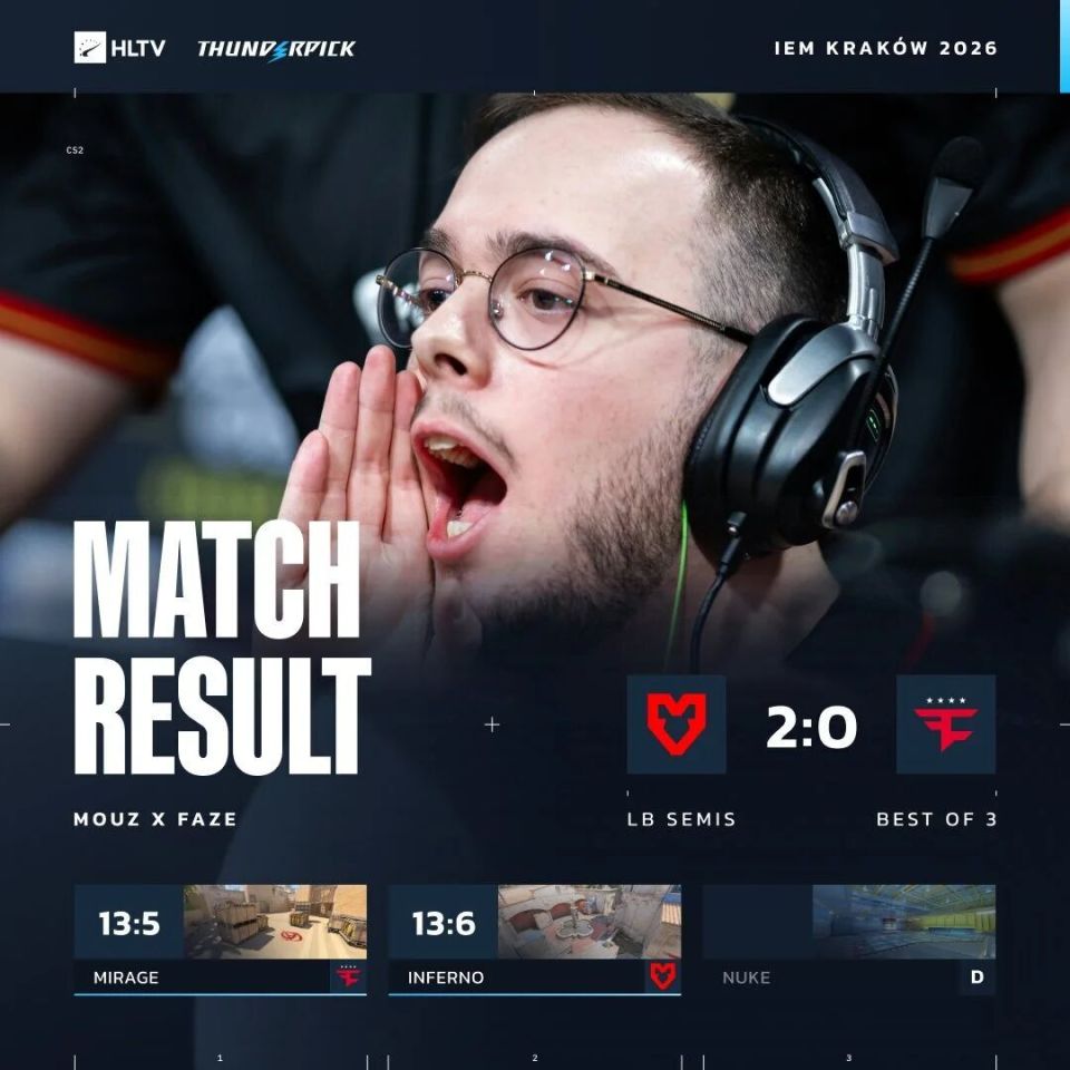 输掉5V2、5V3,猎鹰无缘克拉科夫淘汰赛!MOUZ同日两胜晋级六强