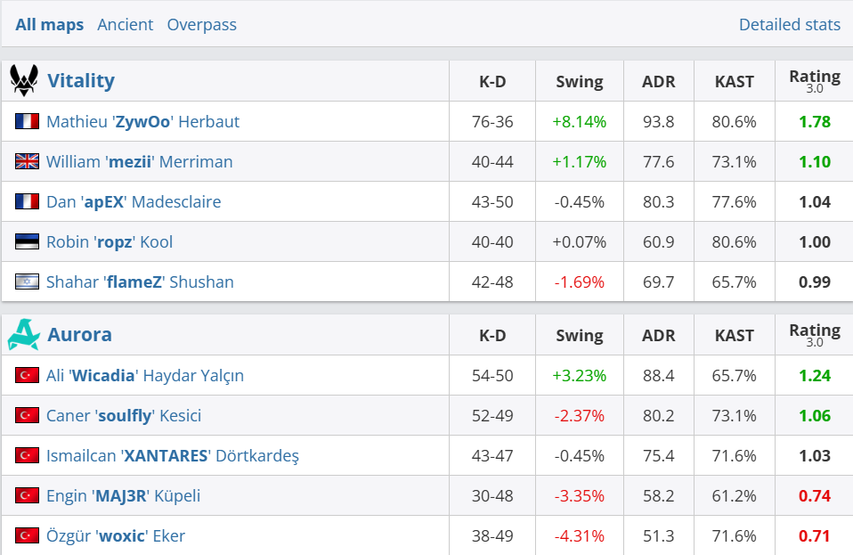 来到图二Overpass,双方的表现完全不在一个级别,Vitality在进攻方豪取8分,并在赢下防守方的第一个长枪局后连拿五分迅速带走对手,土耳其队进入六强。