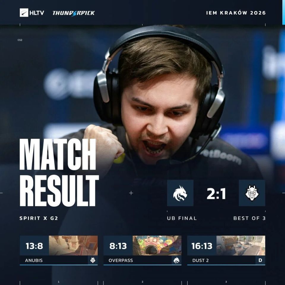 胜者组决赛:Spirit 2-1 G2,晋级四强