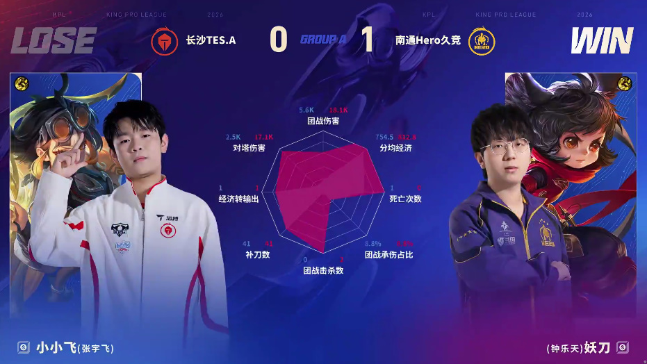 虎扑02月04日讯 Hero/TES第一局数据图:落尘/妖刀分均经济爆表