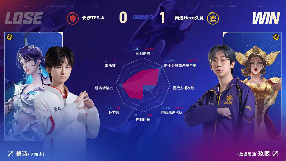 Hero/TES第一局数据图:落尘/妖刀分均经济爆表
