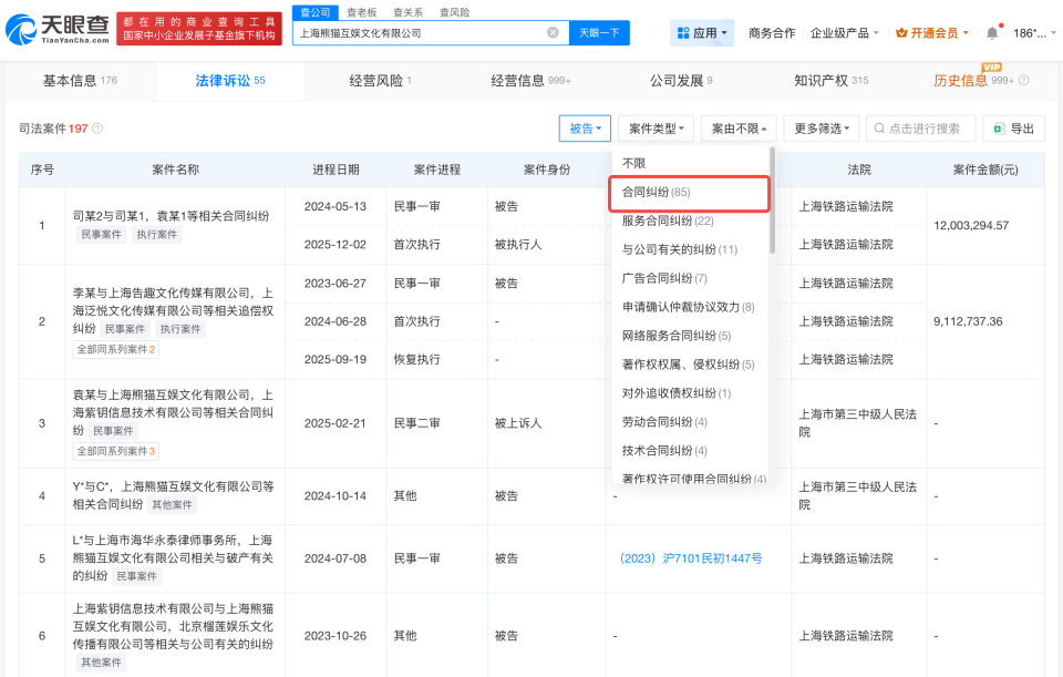 与此同时,王思聪关联的【上海熊猫互娱文化有限公司】也麻烦不断。