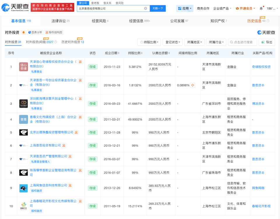 2022 年,普思资本先后退出多家电竞相关企业投资,其持有的 IG 俱乐部股份也逐步稀释;2025 年 12 月,【北京普思投资有限公司】名下【上海麦戟文化传播有限公司】8% 股权被拍卖,而该部分股权的评估值竟为负 166.62 万元。
