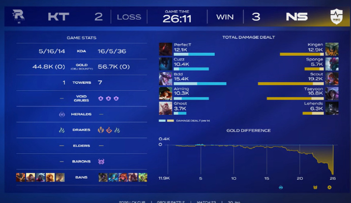而在进入超级周后,最后一周KT以2:3输给了NS,这也就代表B组很难以优胜者的身份胜出,只能靠着小分互相背刺。而靠着小分你来我往的情况下,KT又在这场比赛中,拿到了两小分,HLE的形势岌岌可危。