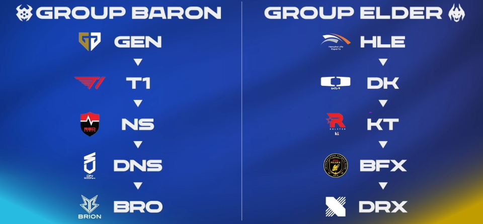 还是从选人阶段开始说起。作为去年联赛大小王的GEN与HLE不能同组,由GEN先选,HLE后选,所以最后的分组就变成了: