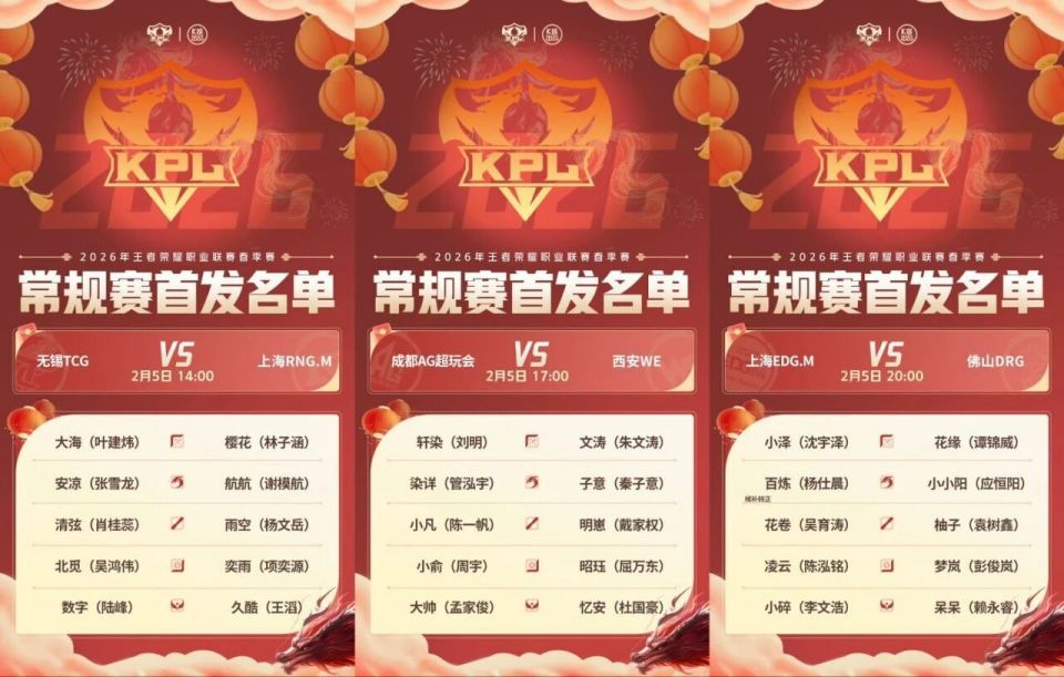 二月五日的三场BO5比赛分别是RNG打TCG、AG打WE、DRG打EDG,RNG没有久哲团队了,B组边路战神樱花得见天日,RNG从B组打才有意思!一诺钟意长生这三人确定年前不会归来,他们目前不仅没有跟训的动静,反而还一直在直播间娱乐,估计要等到年后才回归跟训,感觉今天WE有机会战胜AG拿到A组开门红,不过就怕WE和情久一样是高开低走!DRG往年一直都是S组的常客,再不济他们也会是A王,结果现在DRG沦落到了B组,想从B组这个泥潭逆袭可不容易!
