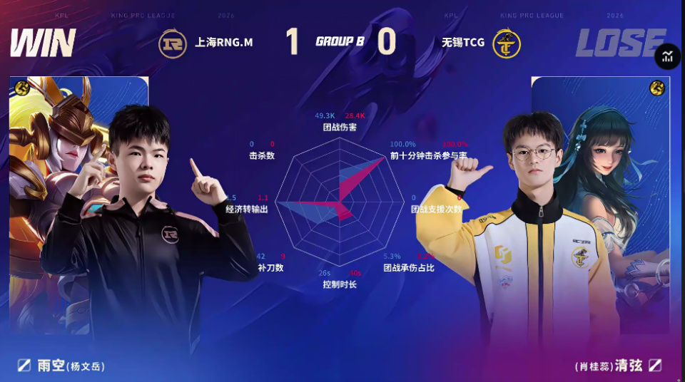 TCG/RNG.M第一局数据对比:奕雨艾琳团战秒均伤害高达1051