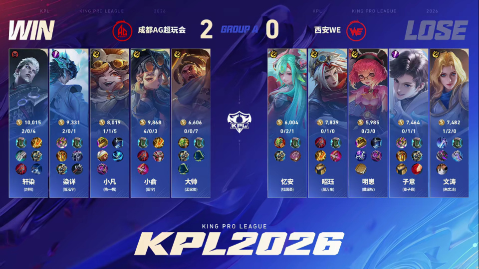 在长生二轮明确不会回归的情况下,AG超玩会只能继续保持这套阵容去争取A组前二,来为自己博一个第三轮回S组的机会。从A组的第一场比赛开始,AG就告诉全网,A组不适合他们!