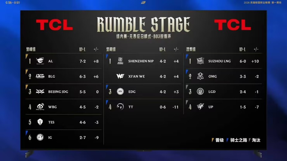 LPL第一赛段组内赛,再有最后2场BO5,就结束常规赛,进入骑士之路了,上一个比赛日,坚毅组NIP零封TT,拿下赛季第四胜,TT成为组内赛唯一0胜队伍,坚毅组前三名,都是4-2的战绩,但EDG的小分,比NIP和WE少一分,因此WE、NIP晋级骑士之路第一轮,EDG去到了第二轮。
