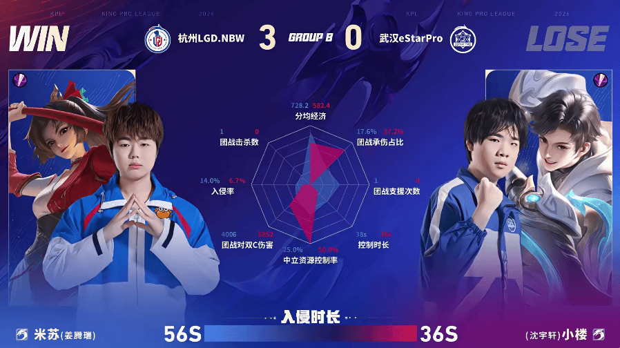 LGD/eStar第三局数据对比:小久蚩奼多数据包围亮宇戈娅