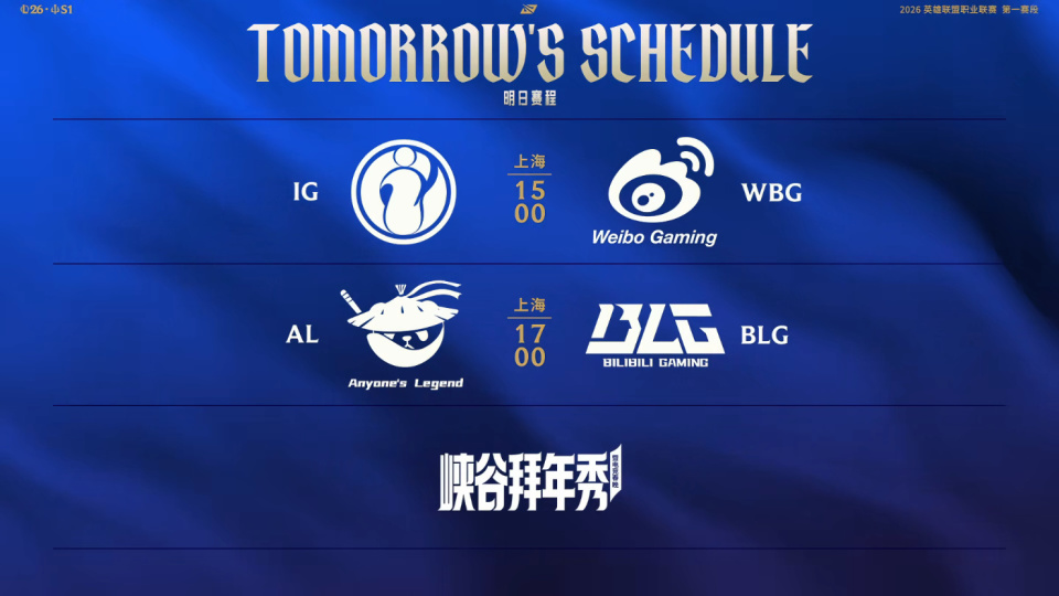 按照赛程安排,2月6日的比赛,由两场比赛组成,IG对阵WBG,以及焦点之战AL对阵BLG。在率先结束的第一局比赛中,WBG零封IG;那么,在第二场AL对阵BLG的比赛中,他们谁能赢下比赛,让我们一起来看一下吧