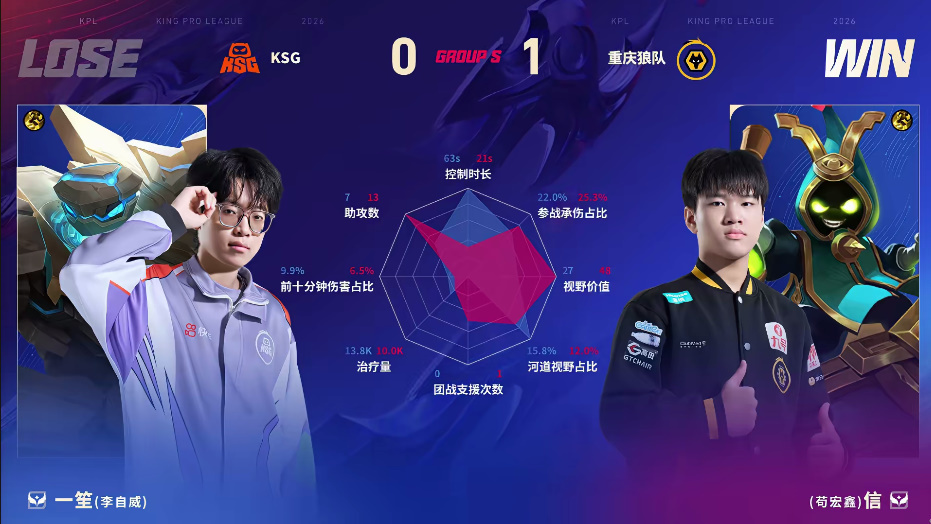 狼队/KSG第二局数据图:信苏烈全包围一笙张良