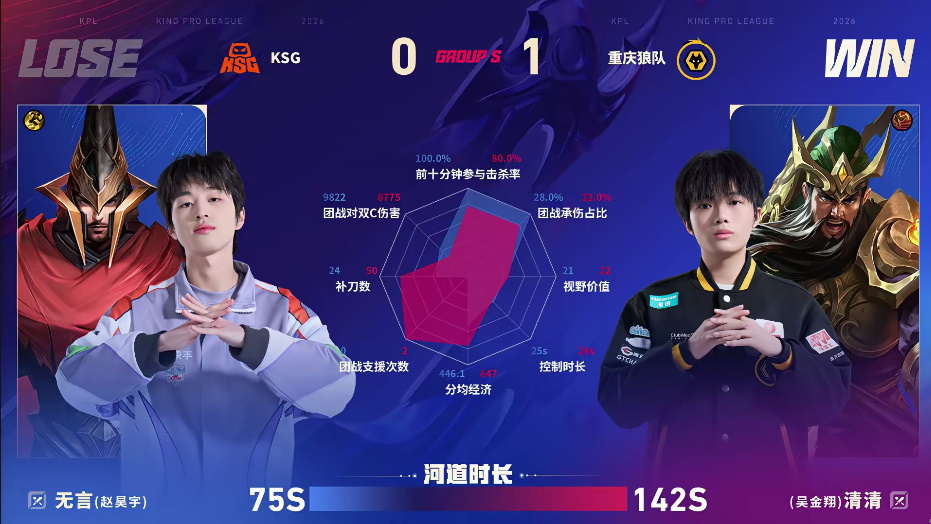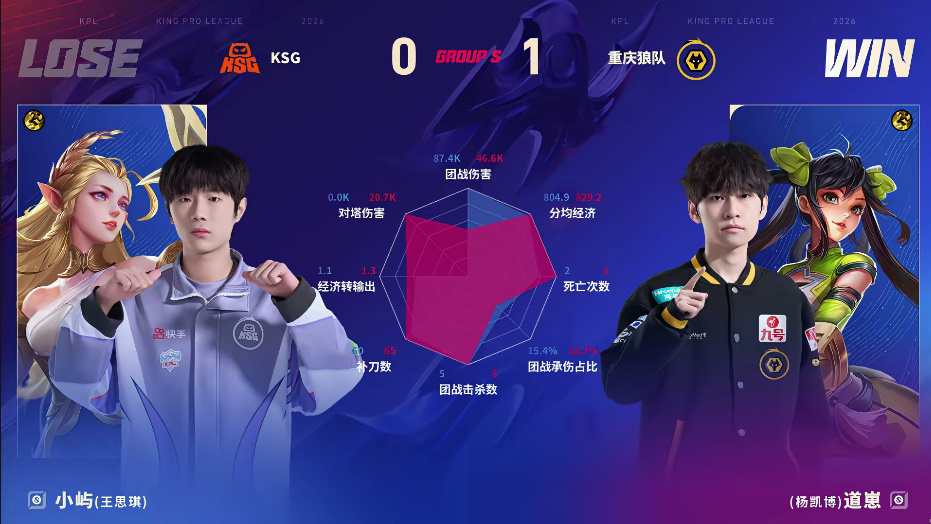 虎扑02月06日讯 狼队/KSG第一局数据图:紫幻小乔四连超凡
