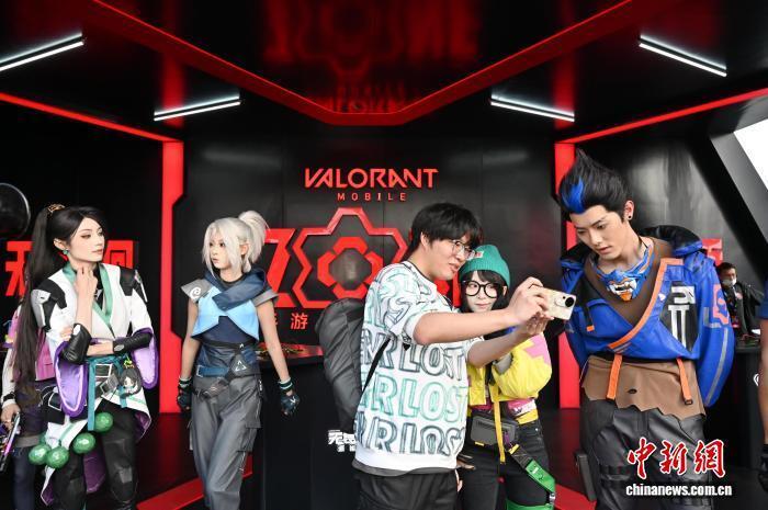 图为电竞游戏人物扮演者吸引观众合影。中新社记者 陈楚红 摄
