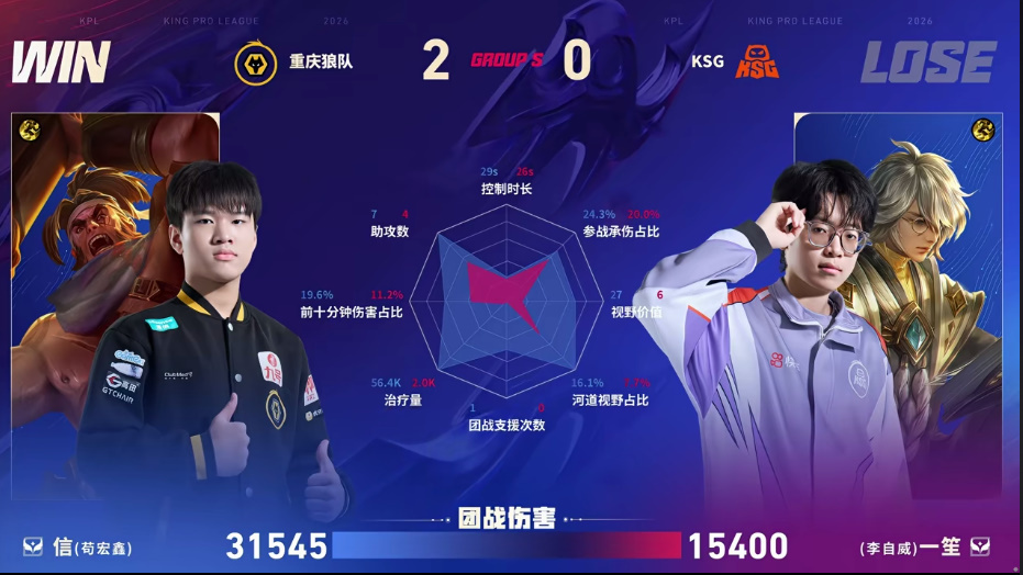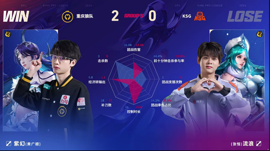 狼队3-0KSG,皖皖继续偏爱火甲,紫幻小乔四杀,信对位压制一笙