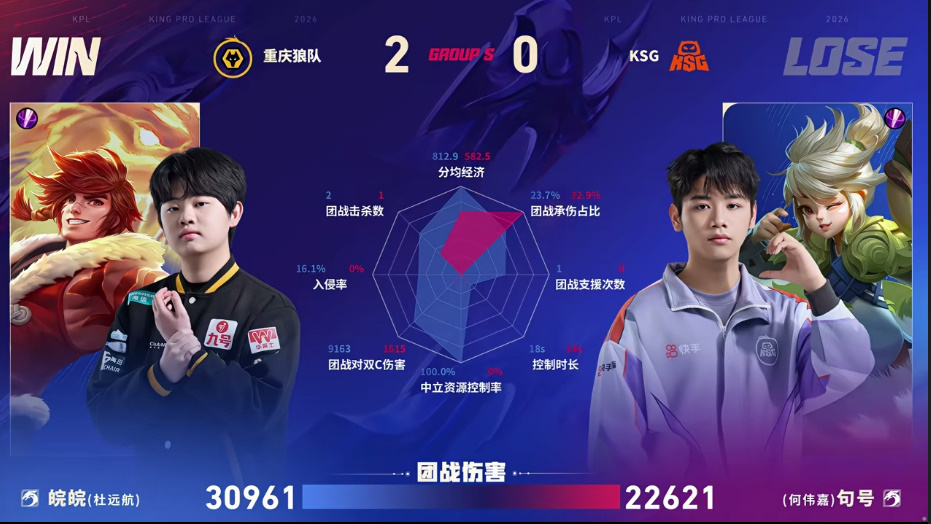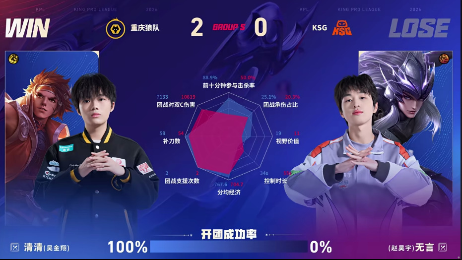 狼队/KSG第二局数据图:信苏烈全包围一笙张良