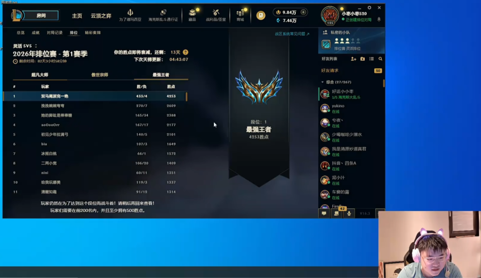 Uzi看一区灵活排位第一名4200胜点433胜4负惊呆了:这个强度不可能只输4把!