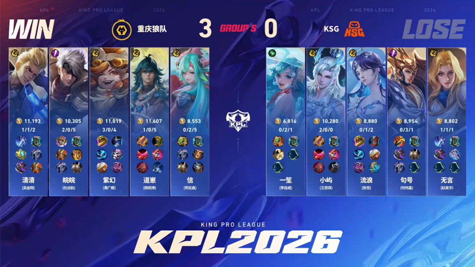 狼队3-0KSG,皖皖继续偏爱火甲,紫幻小乔四杀,信对位压制一笙