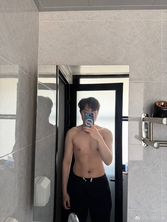 不过照片里Bin哥并没有丝毫的腹肌,只是吸了吸肚子的自拍而已……