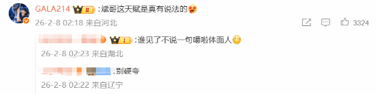 没想到Bin哥在评论区再放厥词:“我只是没怎么练而已 认真练肯定比gala强啊”。Gala本人随后在评论区回复:“斌哥这天赋是真有说法的”。