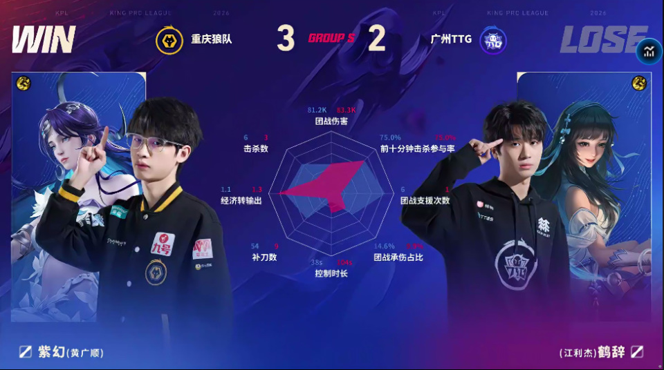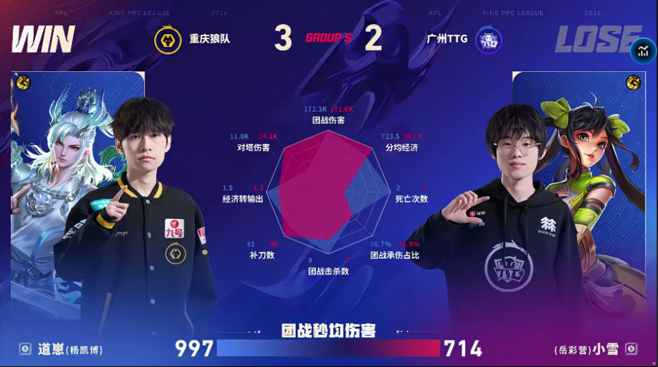TTG/狼队第五局数据对比:皖皖哪吒团战伤害高达十一万