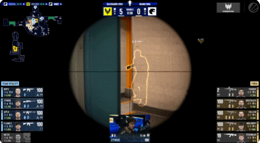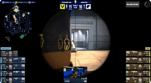 图三Nuke上法国双雄火力全开,薯薯内场大狙无解3杀,大黄蜂以恐怖的防守打出9-0碾压开局。依靠教父灵活选位完成2V3,半场才拿两分。换边Vitality再拿手枪局碾压黑豹,再下一城。