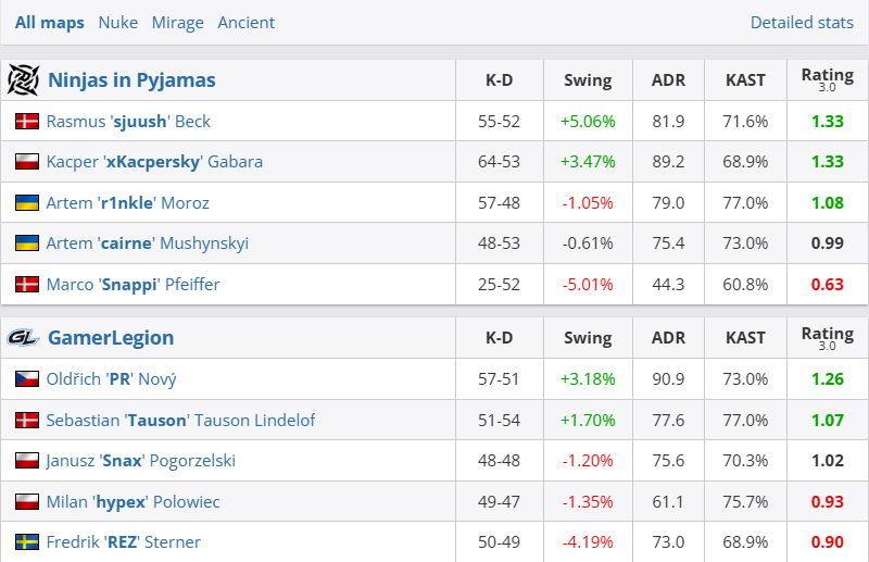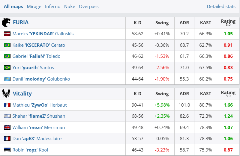 这一rating背后是各项惊人的数据:平均胜利回合1.26击杀,+6.17% round swing,以及29.3%的多杀率。他的单图rating中位数为1.67,58%地图的表现位居全场第一,淘汰赛rating达到1.67。