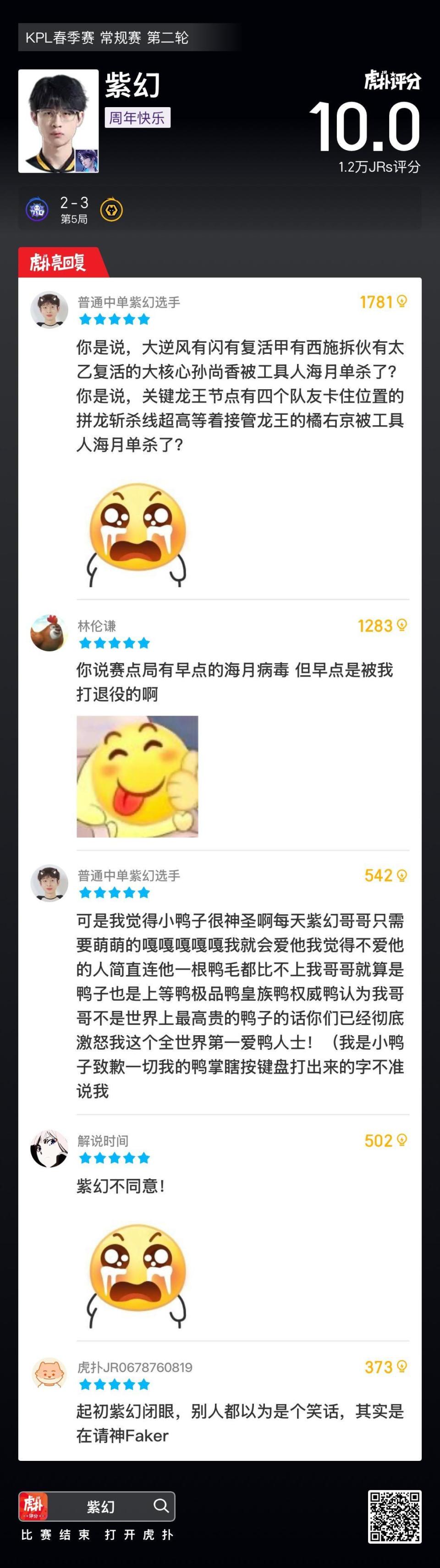 超1.2万人打出10.0!紫幻使用海月斩获春季赛虎扑首个10.0分