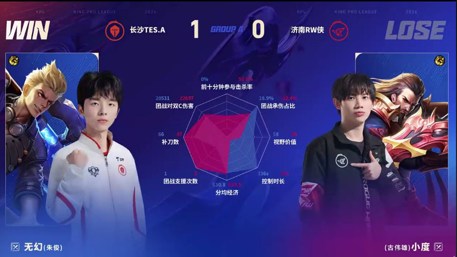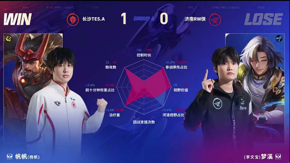 虎扑02月10日讯 TES/RW第一局数据图:书源哪吒全包围今屿暃