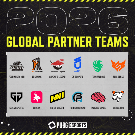 2026 年,PUBG Esports 将共有 12 支全球合作战队加入。这意味着粉丝们能在整个赛季持续追随熟悉的队伍,同时战队也能获得稳定基础来规划他们的全年发展。